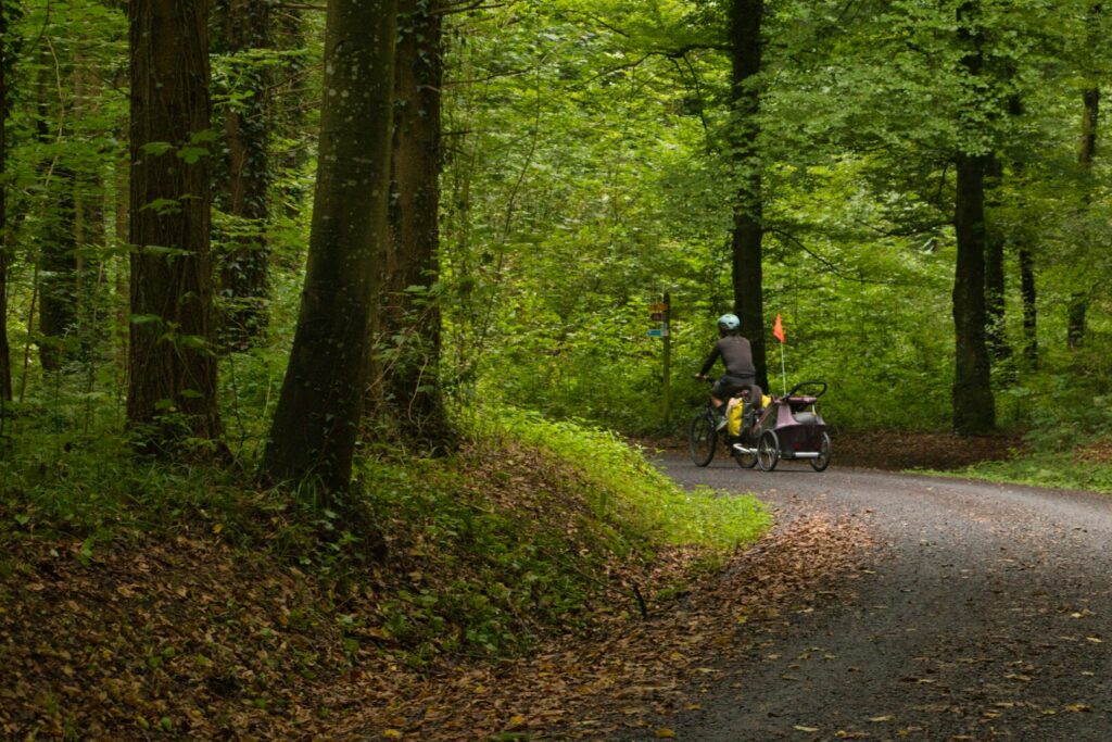 Cet itinéraire se prête particulièrement bien à un voyage en famille. De nombreuses villes jalonnant le parcours disposent d’aires de jeux, idéales pour faire des pauses avec des enfants. Gardez toutefois en tête que l’itinéraire n’est pas entièrement plat : avec une remorque bien chargée et des bagages, certaines portions peuvent s’avérer assez sportives.