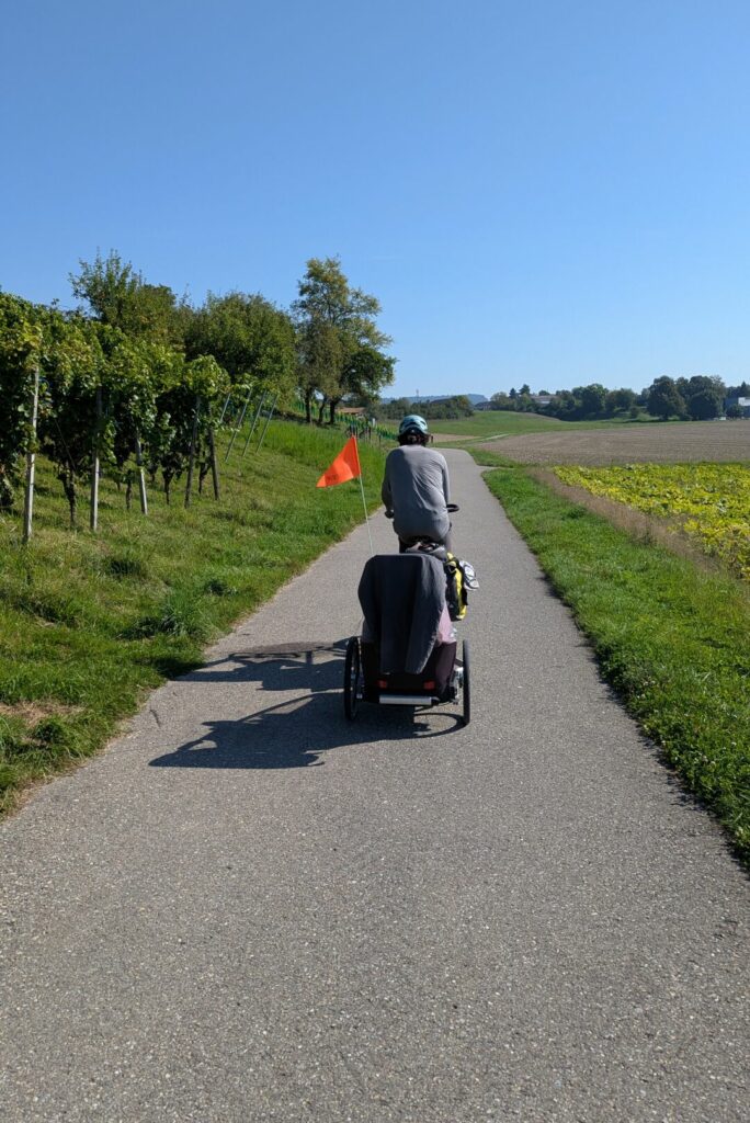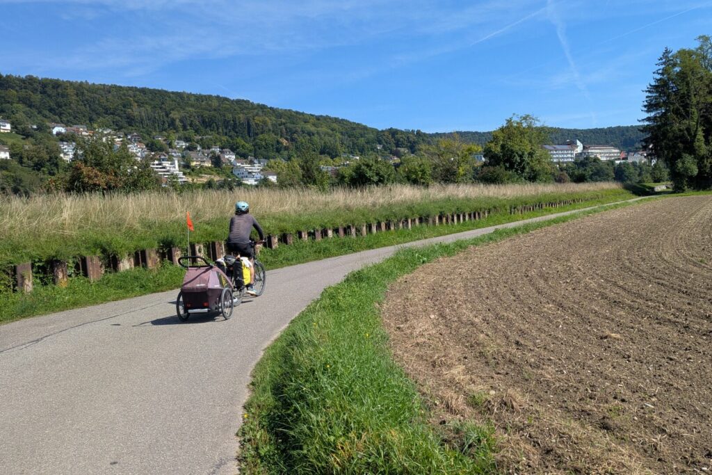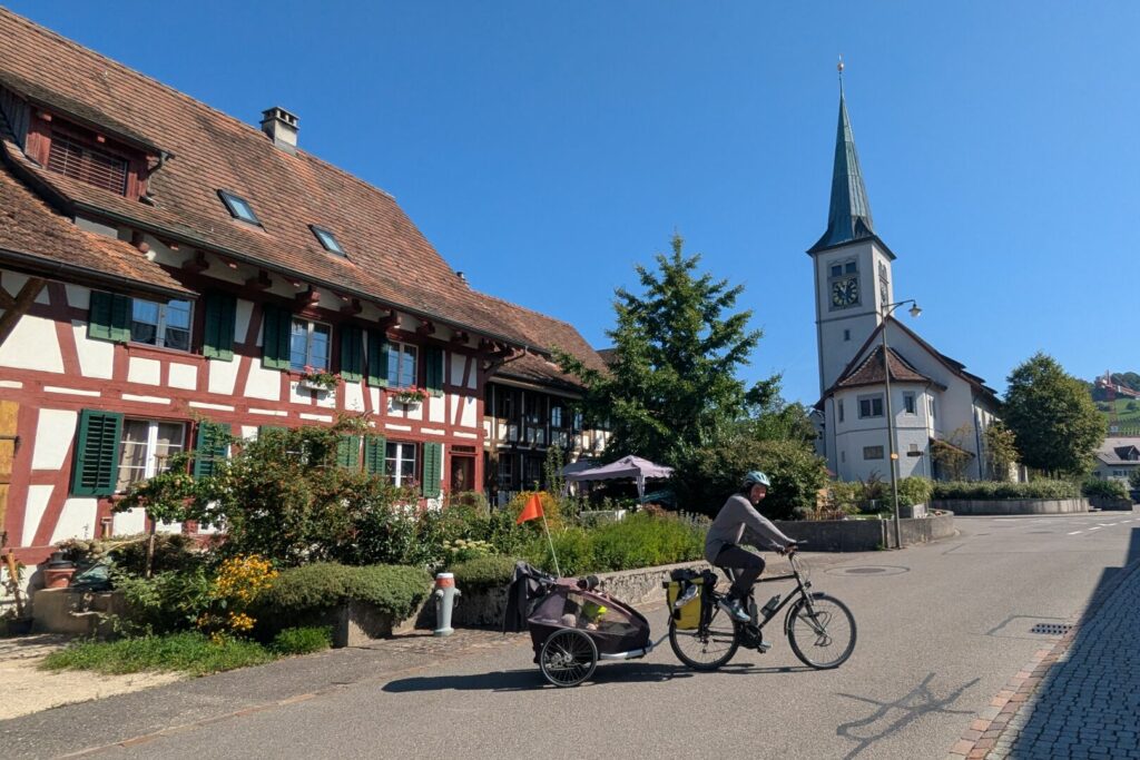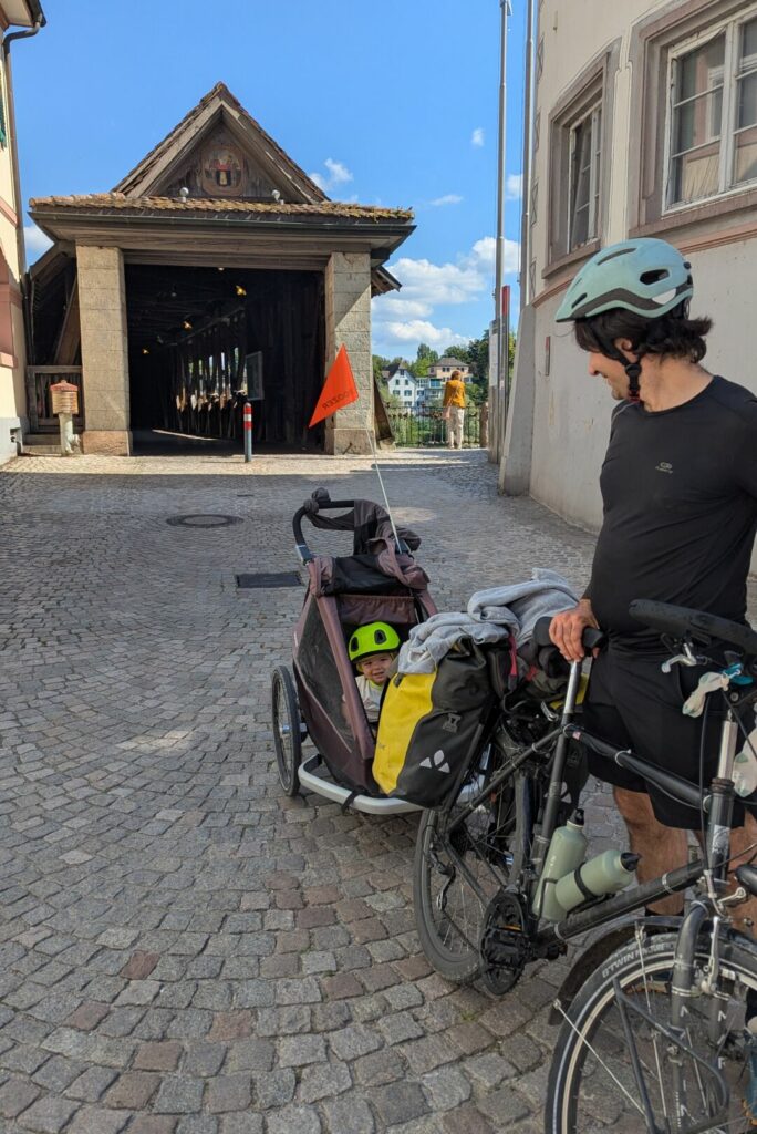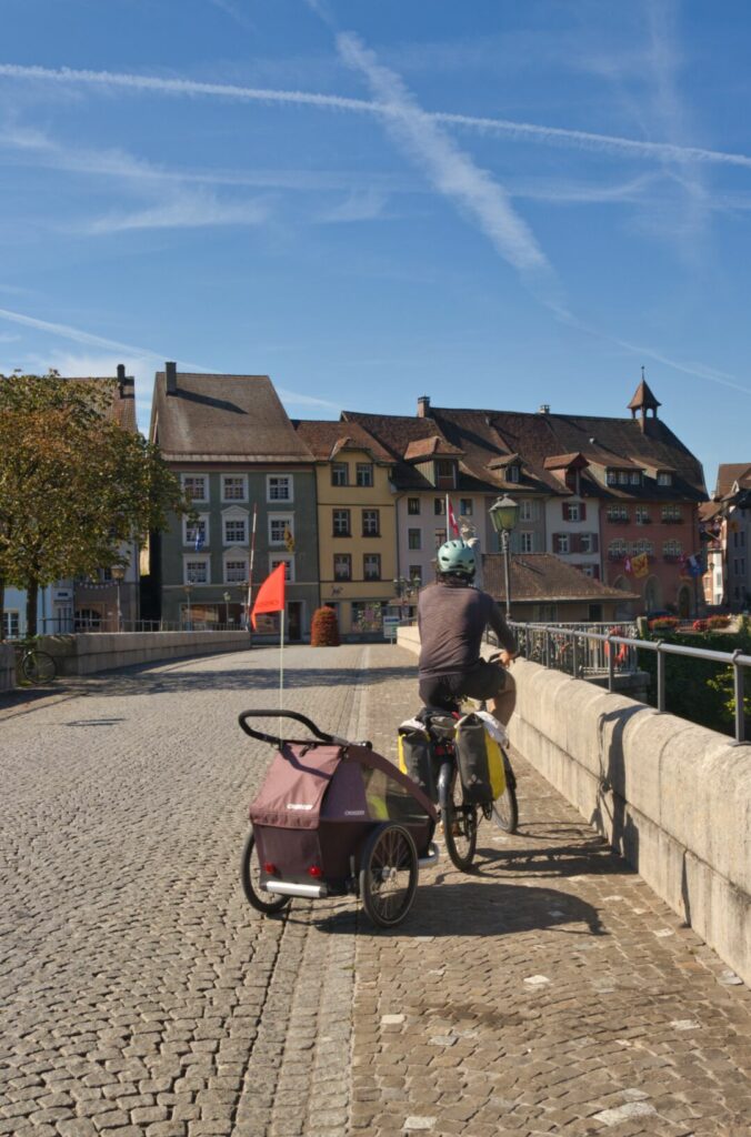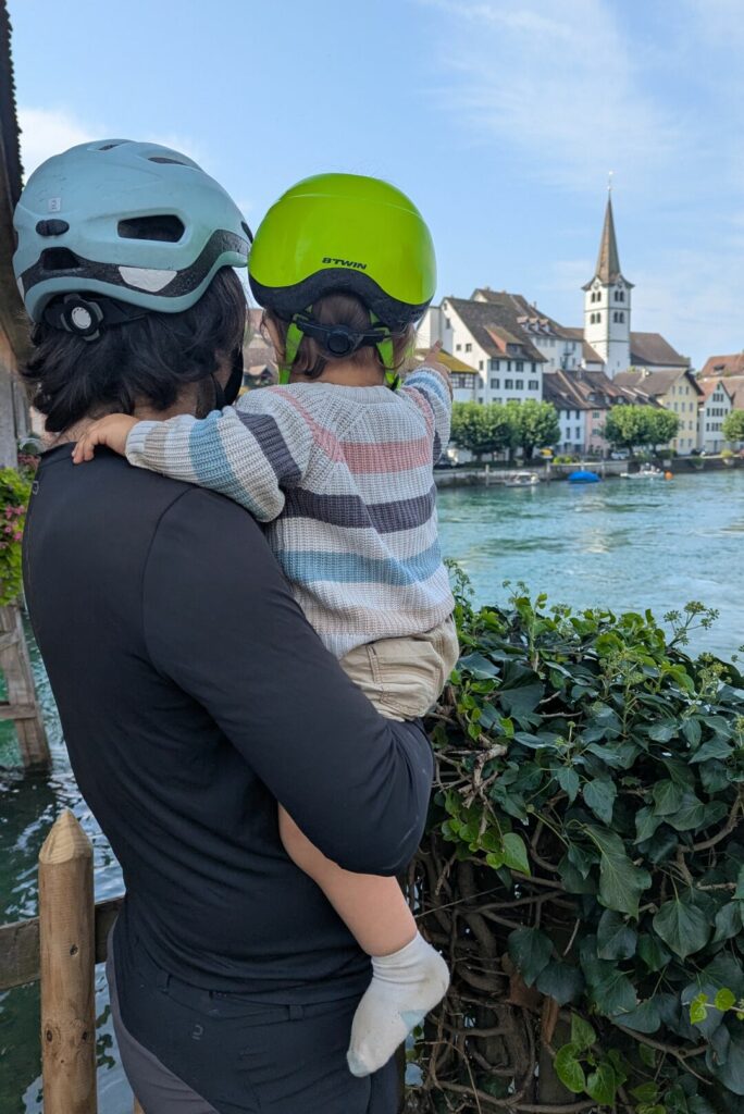 C’est en août 2025 que nous sommes partis, avec notre bébé d’un an, à la découverte de l’EuroVelo 6 en Suisse. Pendant 4 jours, nous avons longé le Rhin entre Bâle et Stein am Rhein, sur cet itinéraire mythique du voyage à vélo. Une aventure aussi dépaysante que scénique. Nous avons eu de véritables coups de cœur tout au long du parcours : les impressionnantes chutes du Rhin à Schaffhouse, la charmante vieille ville de Rheinfelden, ou encore la traversée du pont couvert de Bad Säckingen.