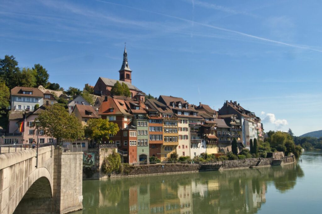 Après avoir quitté Bâle à vélo, vous arriverez rapidement à Rheinfelden, une charmante ville à cheval entre la Suisse et l’Allemagne. Ne manquez pas de vous promener dans la vieille-ville côté Suisse et d’aller admirer le pont sur le Rhin à la frontière entre la Suisse et l’Allemagne.