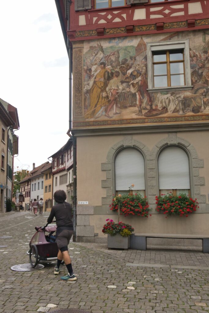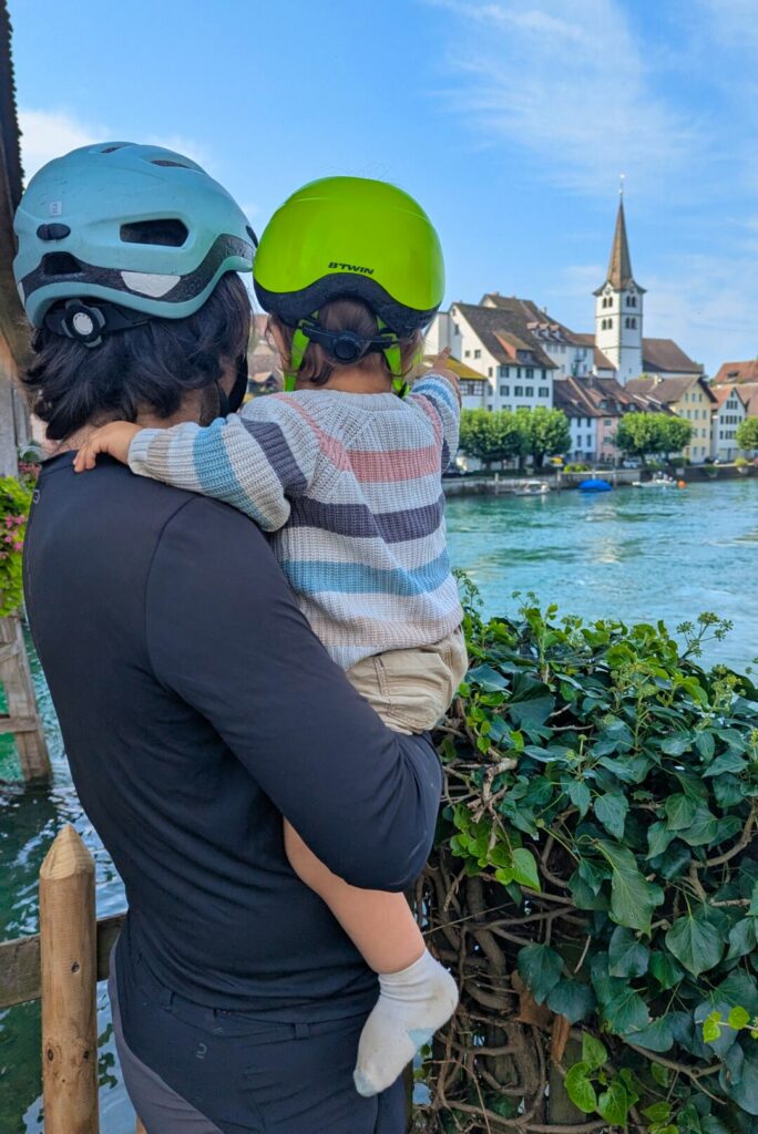 Un itinéraire légèrement vallonné mais très bien aménagé, qui alterne entre la Suisse et l’Allemagne. Gros avantage : les nombreuses aires de jeux parfaites pour une pause pique-nique avec un petit. Un train longe aussi la route, ce qui permet de sauter certaines étapes si nécessaire.