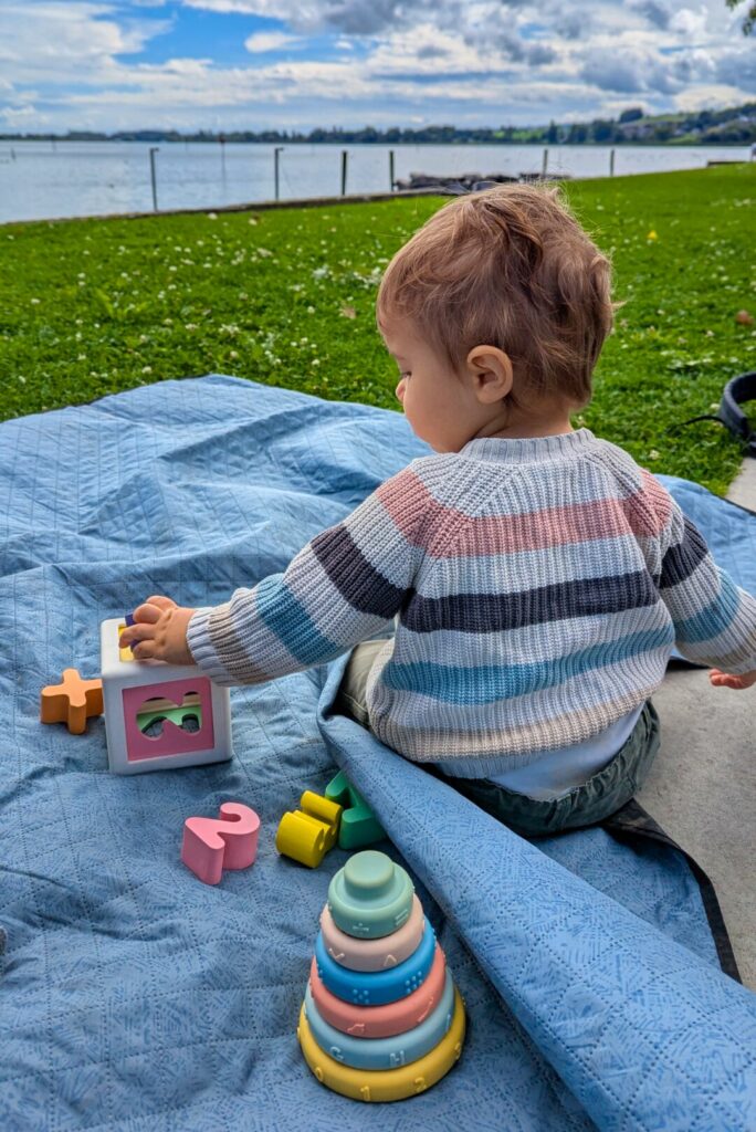 - Un tapis de pique-nique : très pratique pour manger ou laisser bébé jouer le soir au camping ou à midi. Nous le sortons presque à chaque arrêt.