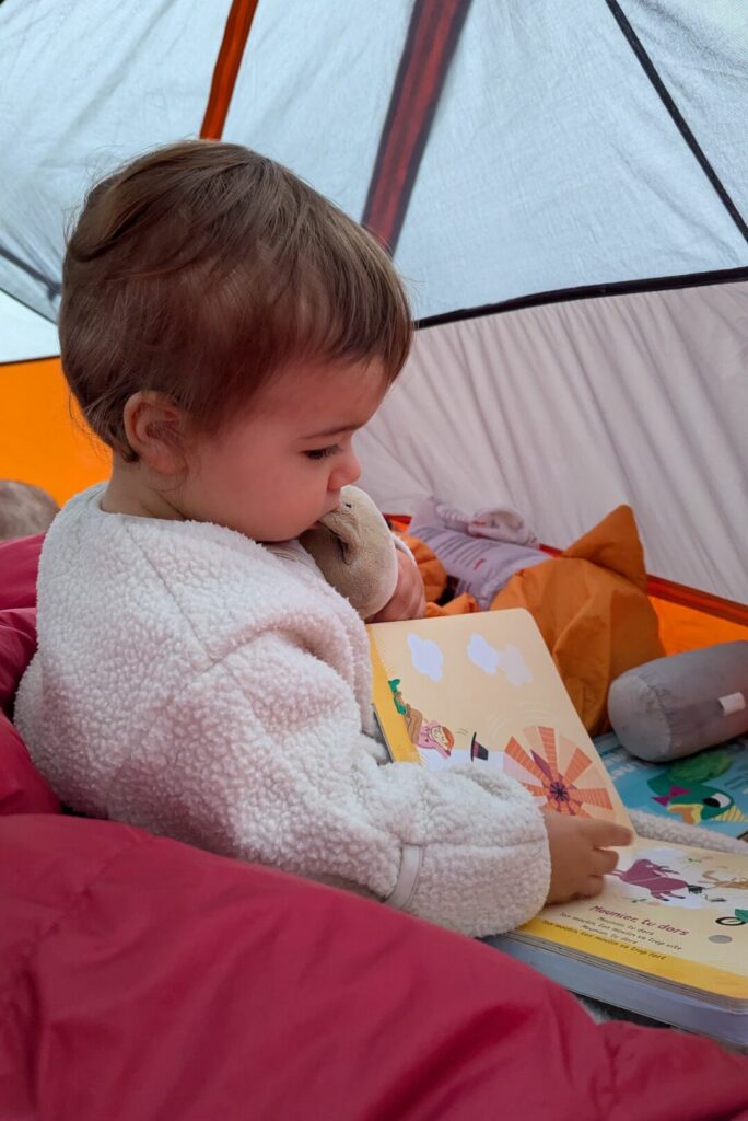 Gérer la routine du coucher sous la tente n’est pas toujours évident. Voici ce qui fonctionne bien pour nous et pour Swann :